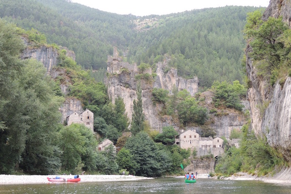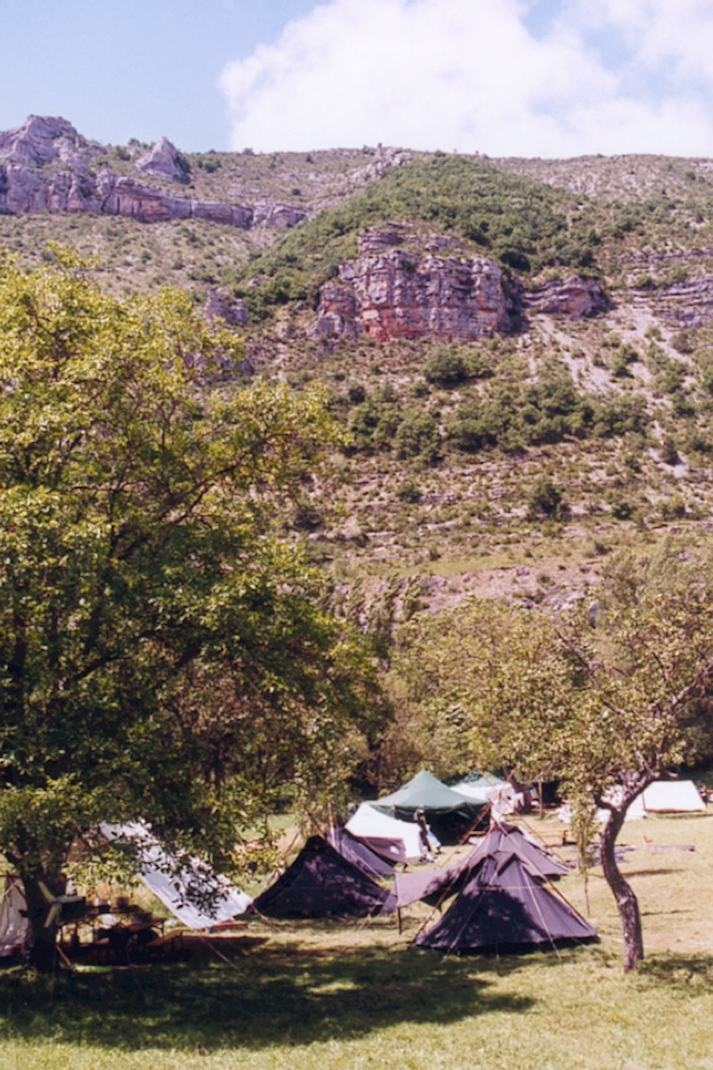 Unser Zeltplatz ist umgeben von den Hochflächen des Causse de Sauveterre, Causse Mèjean und Causse Noir. Er ist für Gruppen mit bis zu 70 Personen. Die Zeltflächen liegen zwischen zahlreichen Bäumen die gut Schatten spenden. Lagerfeuer sind leider in der sehr stark waldbrandgefährdeten Schlucht grundsätzlich verboten. Wir stellen für Gruppen ab 25 Personen ein komplett eingerichtetes Küchenzelt und ein Aufenthaltszelt mit Tischen und Bänken zur Verfügung, so dass nur noch Schlafzelte mitgebracht werden müssen. Ein Stromanschluss ist in beiden Zelten jeweils vorhanden. Im Sanitärgebäude befinden sich 2 Toiletten, 4 Duschen und Waschbecken.